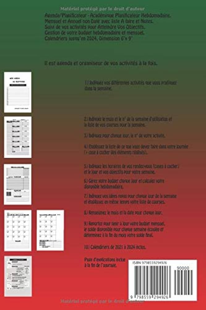 Amazon.com: Mon agenda / planificateur: Planificateur Hebdomadaire