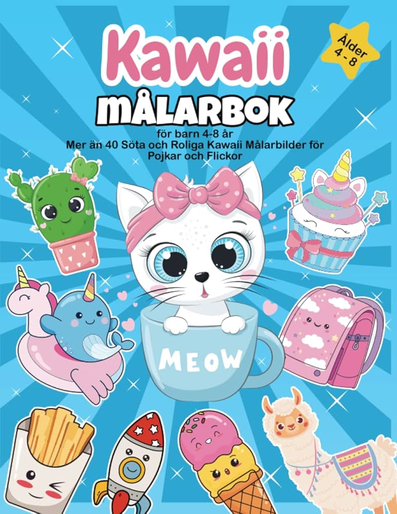 Kawaii Malarbok för Barn 4 8 år: Mer än 40 Söta och Roliga Kawaii