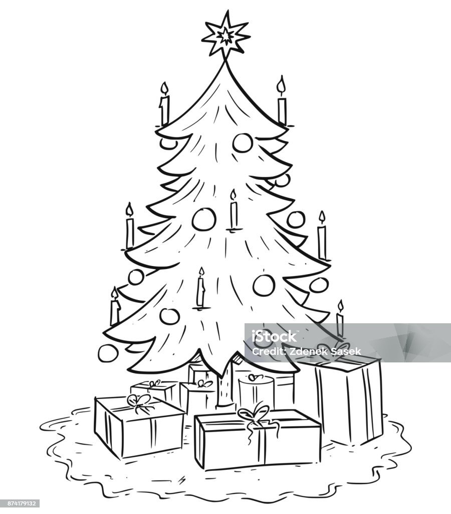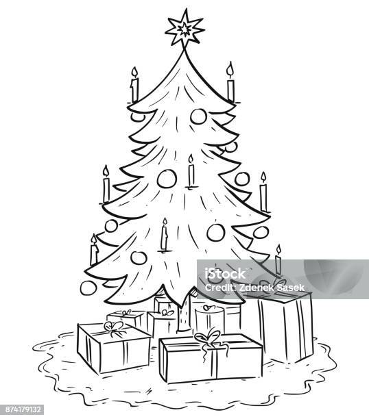 Cartoon Illustration Of Christmas Xmas Tree With Gifts Stock