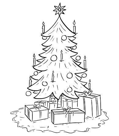 julgran målarbild 2024 Cartoon Illustration Of Christmas Xmas Tree With Gifts Stock : TEXT_3. TEXT_4.