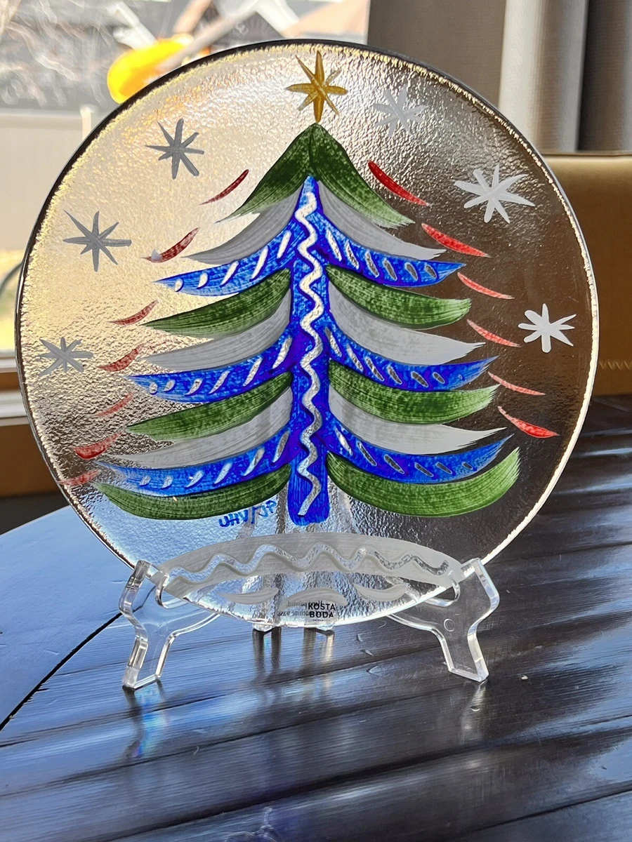 NIB Kosta Boda Christmas Tree Side Plate 7.5” Hand Painted, Made