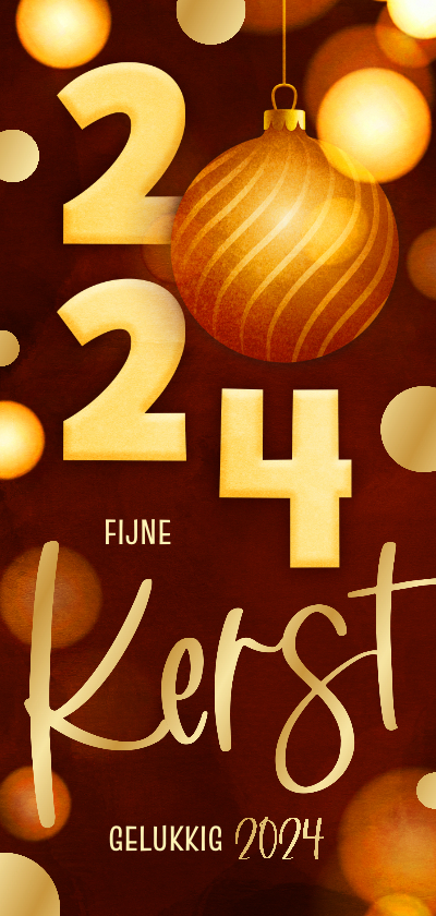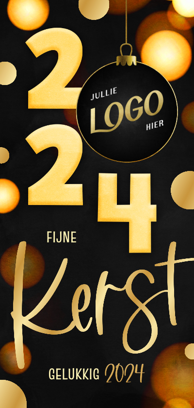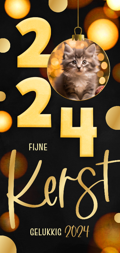 Kerstkaart langwerpig zwart 2024 kerstbal goud | Kaartje2go