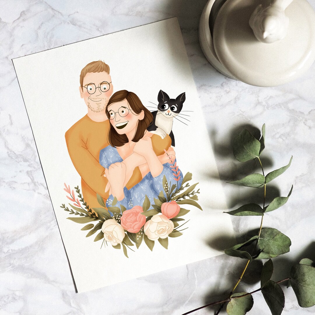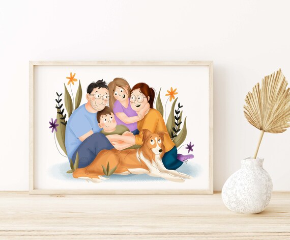 Family Portrait Stylized Illustration Drawing Made to Etsy
