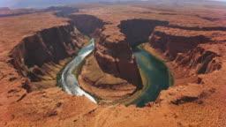 Aerial Colorado Rivier Schijnt In De Zon Rennen Rond De Horseshoe