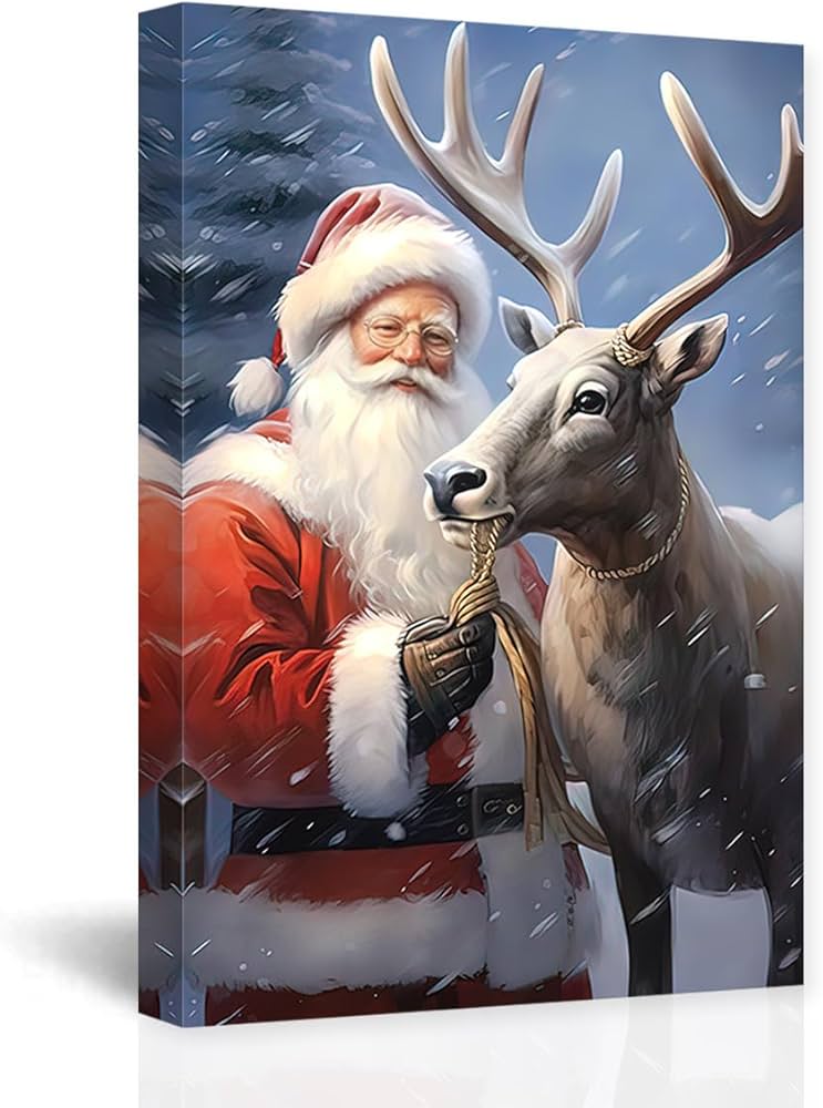 Amazon.de: CCWACPP Weihnachtsmann mit Rentier, Leinwand Wandkunst